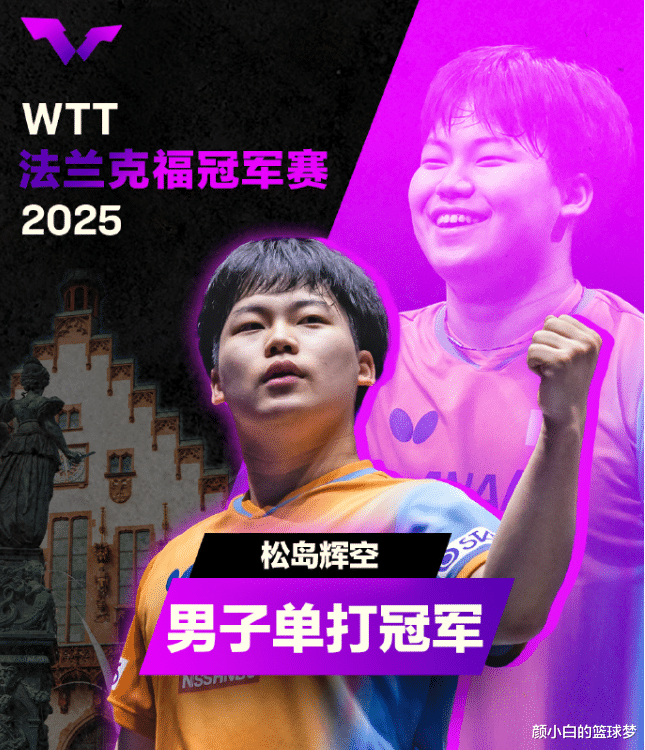 WTT法兰克福冠军赛男单决赛,松岛辉空4-1邱党夺冠,五局比分:【11-8,15-13,11-13,18-16,11-9】。这场比赛是松岛辉空碾压邱党的局势,也算是为大哥张本智和复仇了,毕竟伦敦站决赛是邱党击败的张本智和。