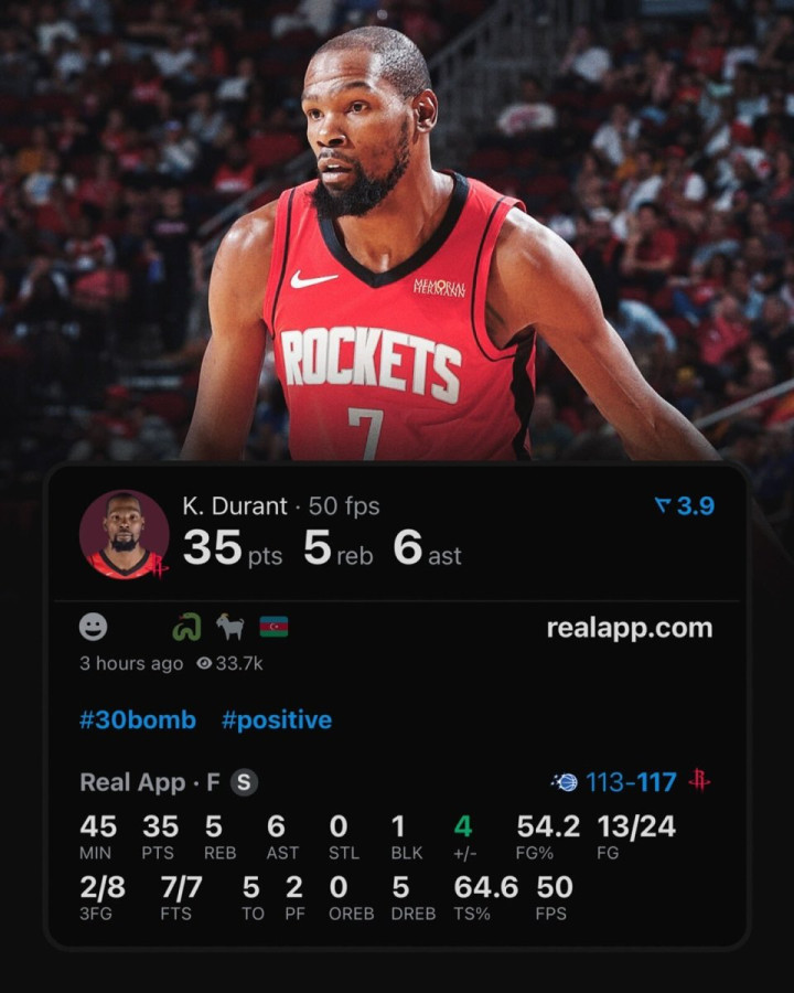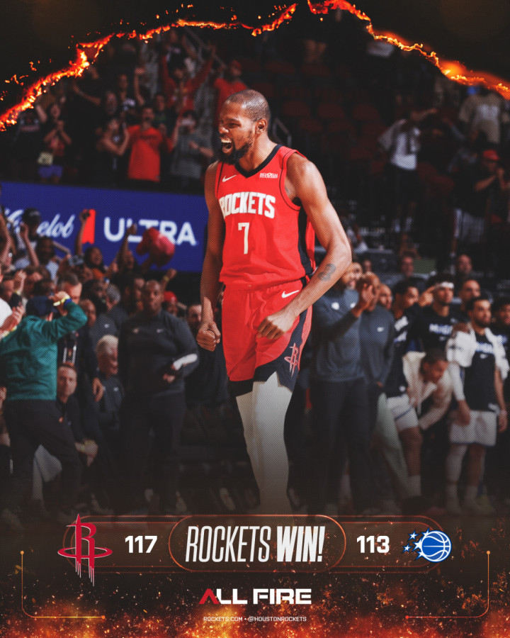 另一位火箭队记Lachard Binkley评论道:“如果有人在休赛期质疑为什么交易来37岁的凯文·杜兰特,这就是原因。他是终极终结者。“