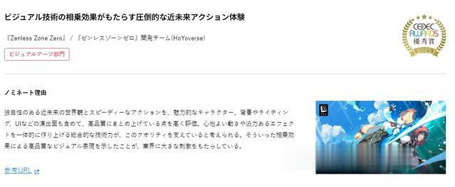 所以《绝区零》能拿到这个优秀奖,一是说明了游戏在日本具有相当的影响力,且影响的不仅有玩家,还有从业者。毕竟CEDEC奖项的提名委员会成员,大多来自卡普空、SE、科乐美等公司;