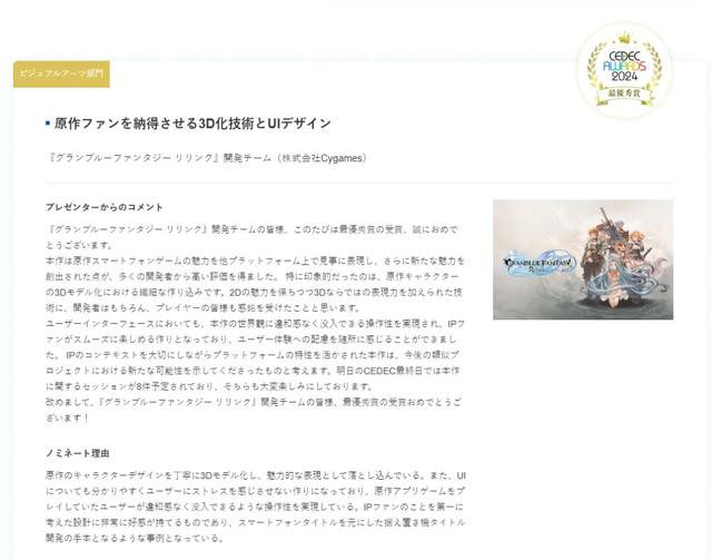 用主办方的话说,这是因为在过去的15年里,它对日本游戏行业在内的3DCG领域做出过巨大贡献。只能说,这次获得该项提名的所有游戏,都败给了整个行业的情怀……