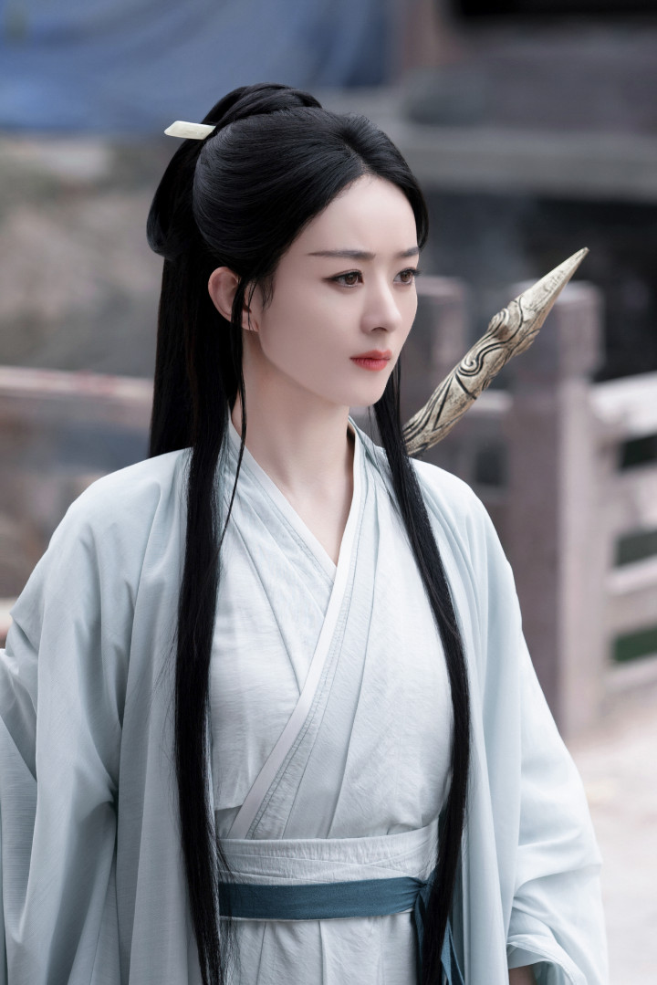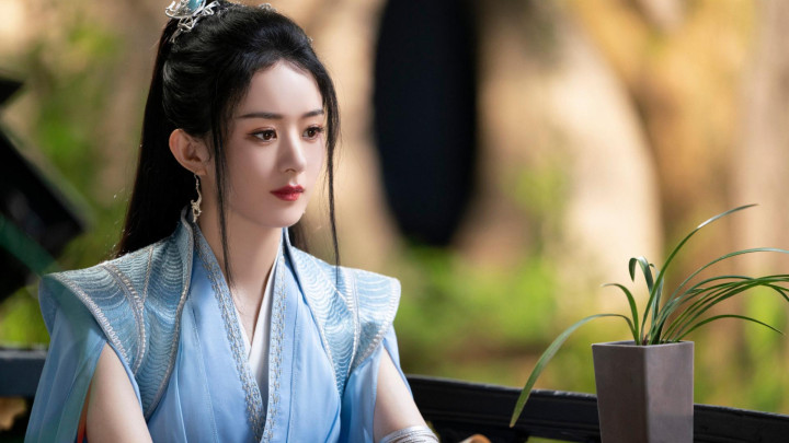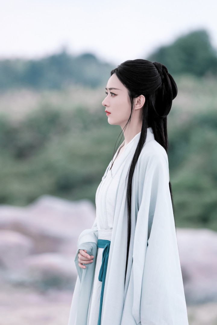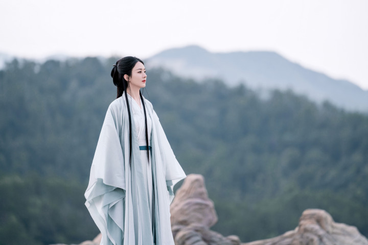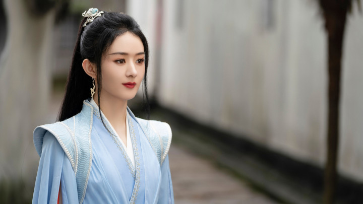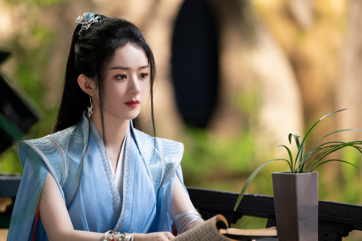 颖宝古装眉间点绛唇含丹,珠帘步摇轻曳,步步生莲宛若画中仙