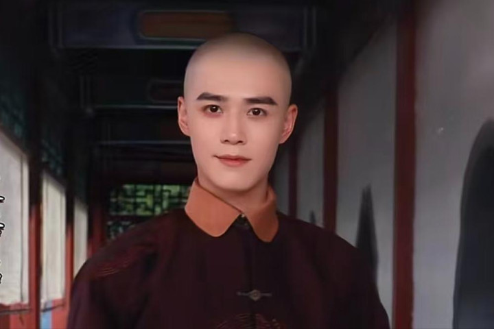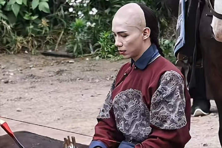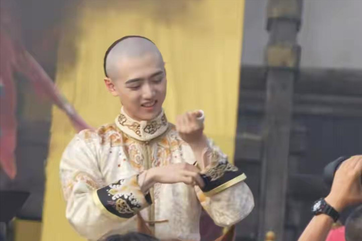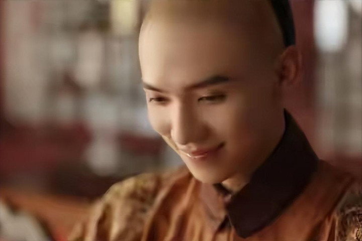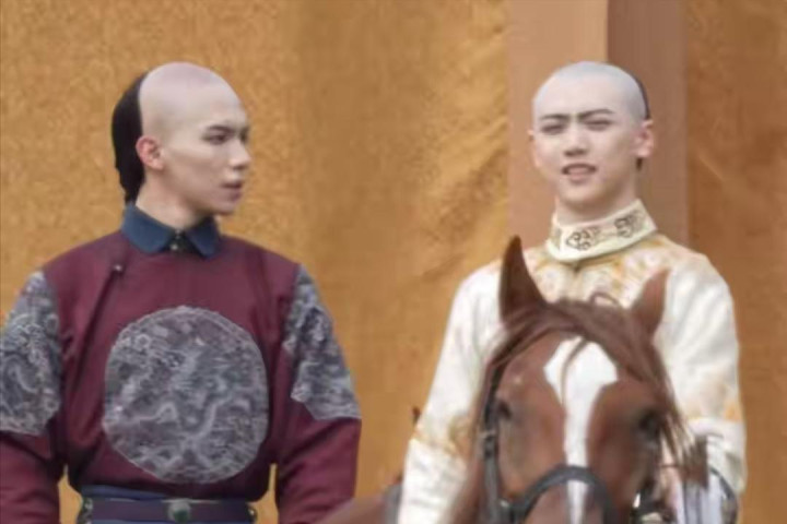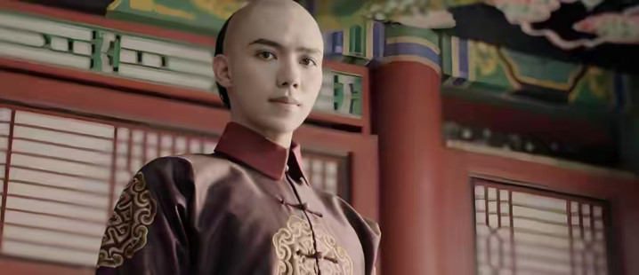 因为他造型有点吃亏,毕竟清宫造型,也不是随随便便可以撑起来的,需要剃光头,留长辫子。