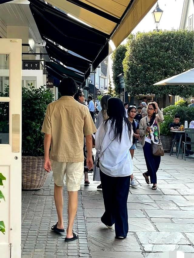 57岁伊能静穿着宽大衬衫配黑裤在英国比斯特村遛弯,被嘲身材臃肿似路人?